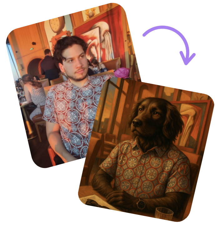 Une fois le quiz terminé, envoyez-nous votre photo portrait : nous la transformerons pour lui donner les traits de la race de chien qui vous ressemble le plus !